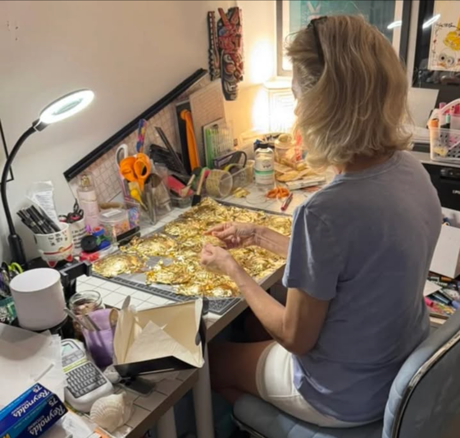 A visual artist who explores color, pattern, and found materials to create works that feel intimately connected to the world around us. Drawing inspiration from nature, everyday objects, and the subtle beauty found in the ordinary, she transforms these elements into compositions that are both playful and thoughtfully considered. Each piece is shaped through a personal, hands-on process, blending organic forms with a sense of whimsy and artistic flair. From the careful selection of materials to the arrangement of each detail, her work reflects a deep engagement with texture, form, and the unexpected stories that emerge when art and the natural world meet.